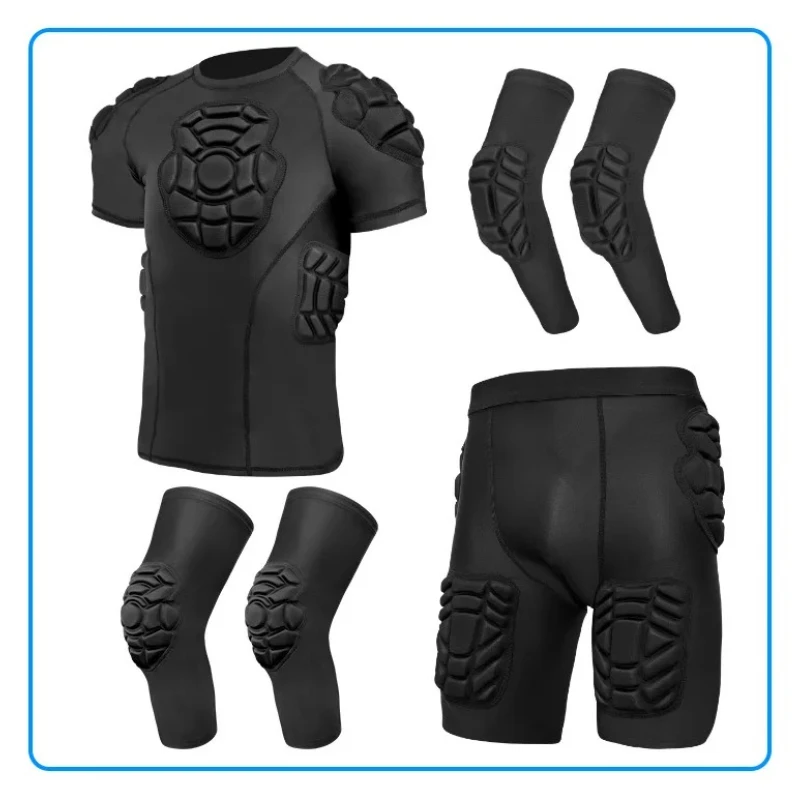 This men’s compression sports gear is designed for high-impact training and competitive play. The set includes a jersey and shorts that provide a snug, supportive fit for maximum mobility. Impact-resistant materials help protect muscles during football, basketball, rugby, and other sports. The breathable fabric wicks away sweat to keep athletes dry and comfortable. Compression support enhances blood flow and reduces fatigue during long training sessions. The lightweight design allows full range of motion for running, jumping, and agility exercises. Youth sizes ensure a proper fit for younger athletes in training or competition. Durable stitching ensures long-lasting performance even during intense workouts. This versatile sportswear set is perfect for goalkeepers, field players, and multi-sport athletes. It helps improve performance while providing comfort and protection in every game or training session